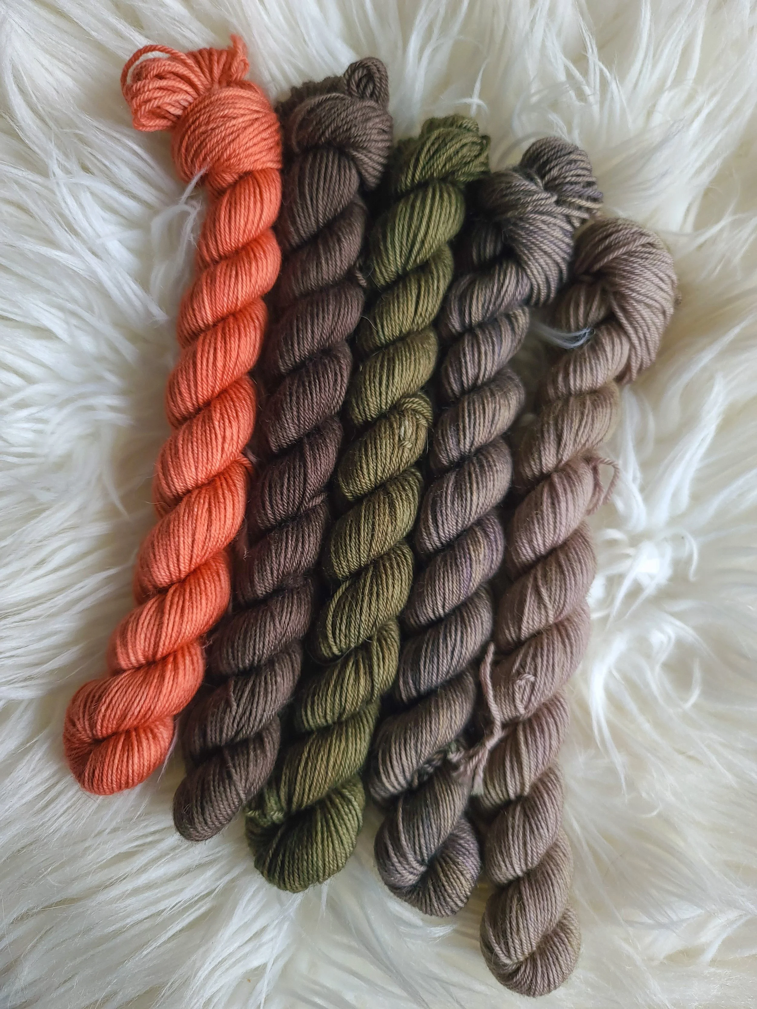 These kits include one skein of a semi-solid and all 11 mini skeins. You can pick and choose the order of your fade and make a truly personalized wrap.